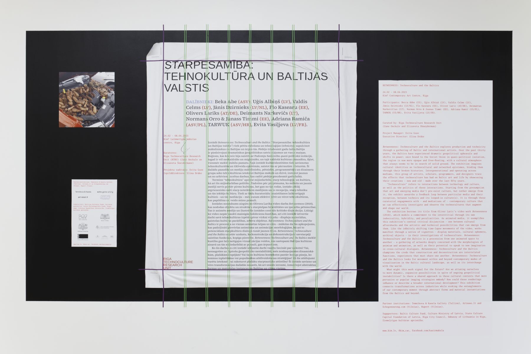 Izstādē Betweenness: Technoculture and the Baltics (“Starpesamība: tehnokultūra un Baltijas valstis”) tiek pētīta ražošana un tehnoloģijas (tehnicity), sapulcinot māksliniekus no Baltijas un ārpus tās. Pēdējo trīsdesmit gadu laikā Baltija ir piedzīvojusi dramatiskus ģeopolitiskus satricinājumus un varas maiņas. Reģions, kas kādreiz bija saistīts ar Padomju Savienību quazi-politiskā izolācijā, tagad ir vēl neskaidrāks un miglaināks, un tajā valdošā kultūras atmosfēra, šķiet, vienmēr meklē stabilu pamatu. Šajā izstādē kultūridentitātes tiek savienotas tehnokulturālās un tīklveida epistēmās, saistot tās ar pārrautām vēsturēm. Šī dažādu paaudžu un mediju mākslinieku, pētnieku, programmētāju un dizaineru grupa seko tehnokultūras ietekmei Baltijas mākslā un dzīvē, izstādot jaunus un no arhīviem izceltus darbus, kas radīti pēdējo piecdesmit gadu laikā.